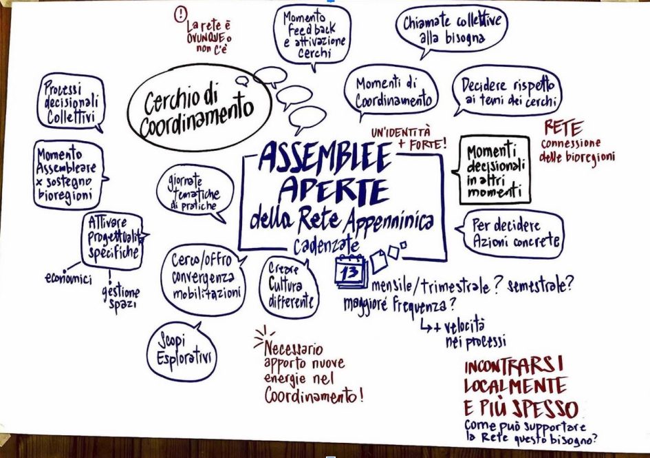 Oltre a portare avanti e consolidare il lavoro di questo ultimo anno sui temi di Economie di comunità, Beni comuni, Sovranità alimentare e Comunicazione, sono stati aperti altri tavoli di lavoro: Salute in Appennino, che vuole esplorare l’accesso e la qualità dei servizi, pubblici e non, attraverso un progetto di ricerca-azione; Confederalismo e mobilitazioni: fare rete per sostenere e potenziare le azioni e i gruppi attivi sul territorio e rendere trasparente e aperto il lavoro di coordinamento.