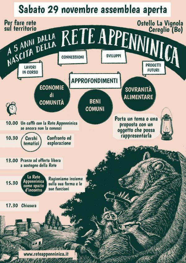 🎪 Sabato 29 novembre dalle 10 alle 17.30 ci sarà la prossima Assemblea Rete Appenninica. 🎪 Pranzo: a sostegno del progetto Rete Appenninica, offerta libera. Dove: Ostello di Cereglio, via della Vignola, Cereglio, Vergato (Bo) Per fare rete sul territorio, a… Continua a leggere →